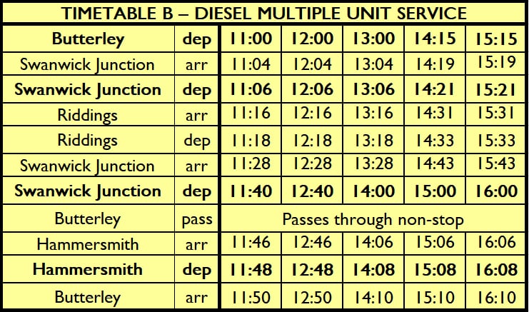 Start: 25/04/2026 End: 26/04/2026 Timetable: Timetable B – Diesel Multiple Unit